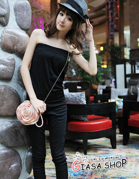 描述:新贵休闲风范裹胸高腰连体长裤