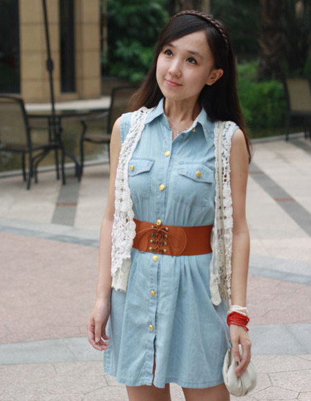 夏天的薄款牛仔面料,背心裙的样式,还可以当外套穿的哦。领部有碎花的内衬。加上一个宽腰带,简直就是美极了。 &n […]